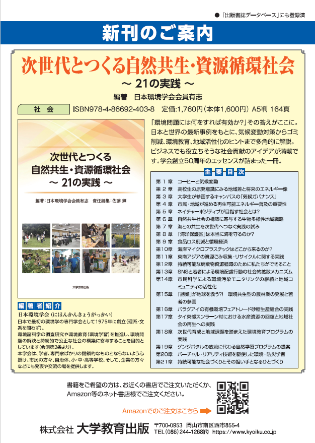 この度、日本環境学会では創立50周年を記念して会員有志の研究や実践に基づく書籍を発行いたしました。